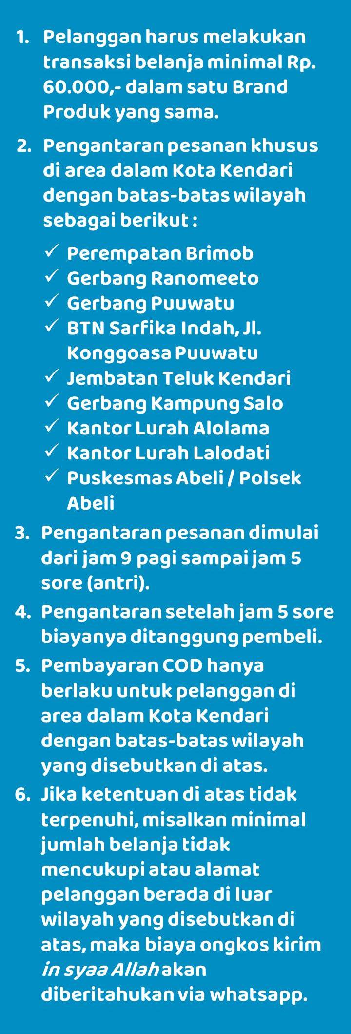 Diantara kelebihan berbelanja online di toko kami adalah GRATIS ONGKIR dan bisa BAYAR COD dengan syarat dan ketentuan (S&K) yang berlaku